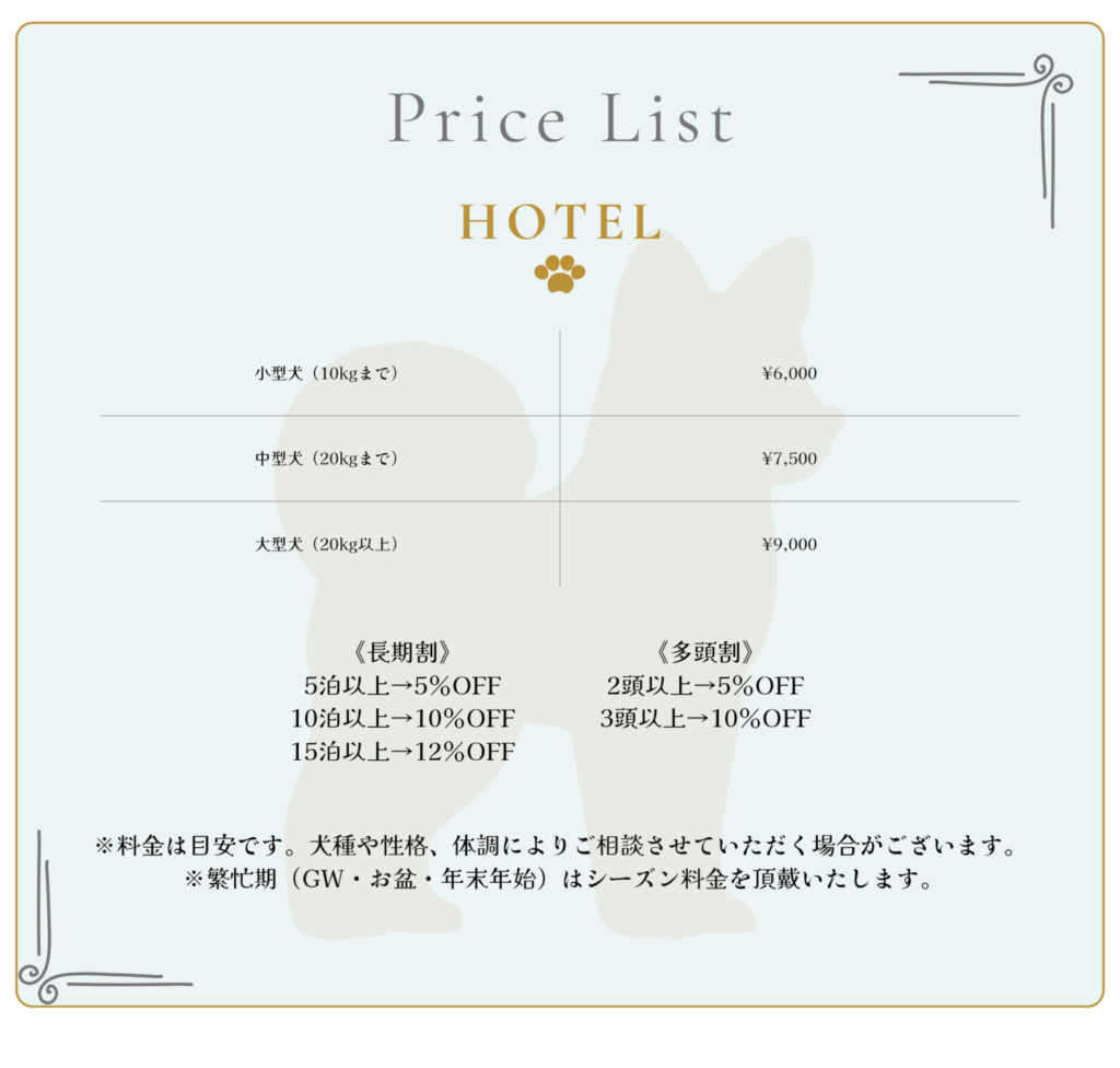 Pet Care Gardenのホテルは、一匹ごとにご用意した個室でお預かりいたします。